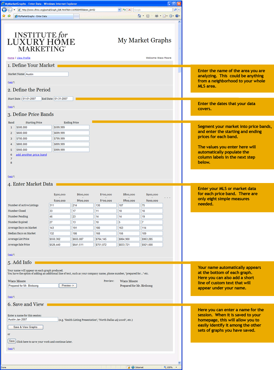 Screen 1: Your Home Page Below is the homepage for My Market Graphs. This is what you see when you log in.